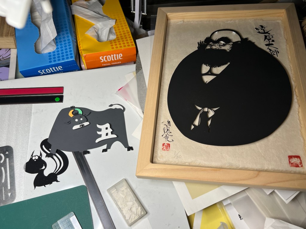 ダルマは切り絵の教本用に作った。時間がなかったんで、それなりに作った。ダルマというテーマがピンとこないが、切り絵の切り口は、俺独特!が出ているかもしれない。