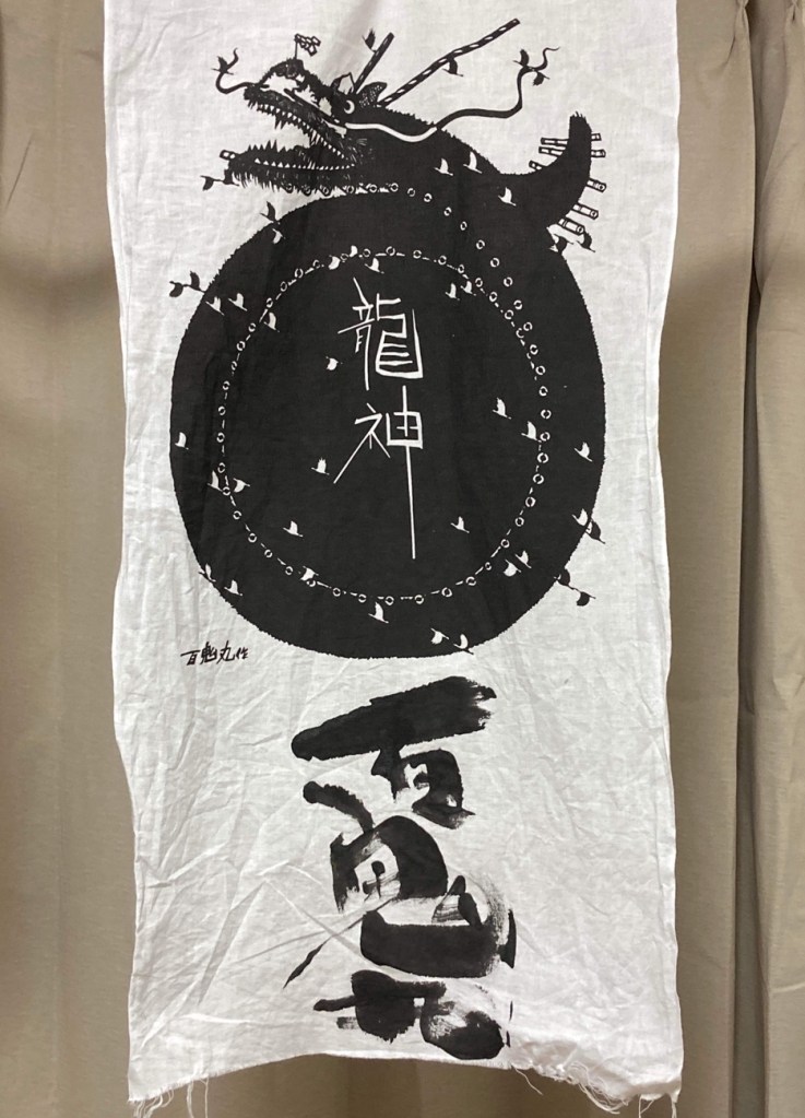 かつて高橋さんが、買った手拭いには、筆書きの落ちないサインをしましたね。